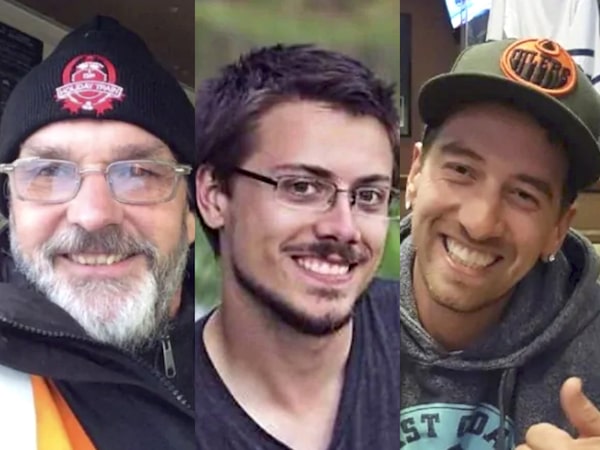 Engineer Andrew Dockrell, left, conductor Dylan Paradis and Trainee Daniel Waldenberger-Bulmer, right, killed in the Canadian Pacific freight train derailment near Field, B.C.