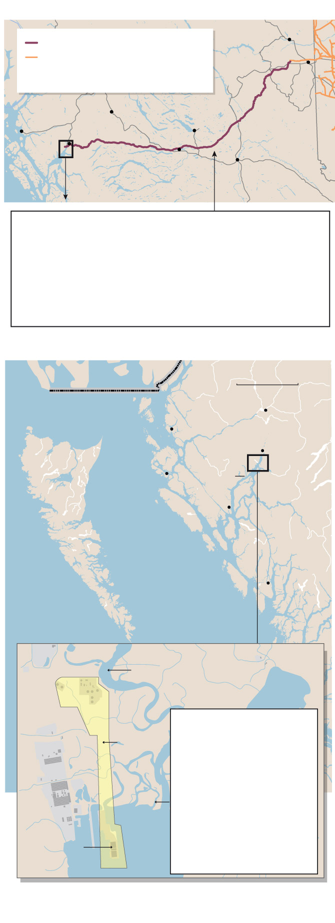 As for the LNG plant and export terminal, the Haisla’s main reserve, Kitamaat Village, is a 20-km drive south of town, across Douglas Channel from the site.