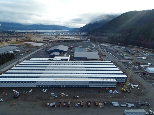 At the LNG Canada site, once the work-camp housing is complete, focus will shift to building the huge plant and terminal.