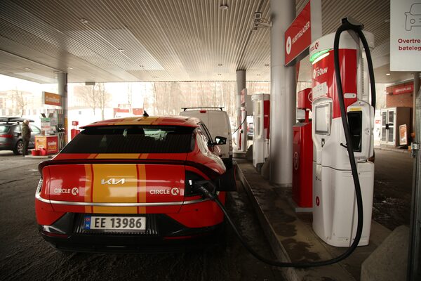 An EV charges at a Circle K station in Norway. While filling a gas tank only takes a few minutes, EV drivers usually take nearly half an hour to charge a car.Nathan Vanderklippe/The Globe and Mail