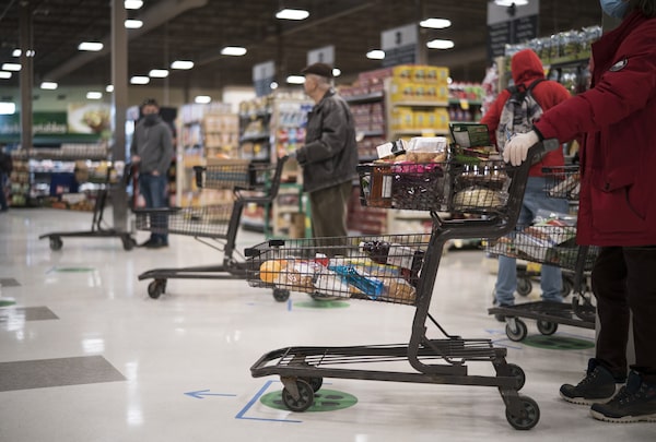 Sobey's Queensway store in Toronto on Apr. 3, 2020. Canada’s Food Price Report says the cost of groceries will increase by 5 to 7 per cent in 2023.J.P. MOCZULSKI/The Globe and Mail