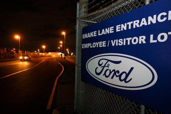 A vehicle exits out of the Ford Windsor Engine Plant on Sept. 19, in Windsor.Bill Pugliano/Getty Images