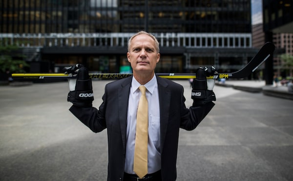 Graeme Roustan holds a hockey stick in Toronto's financial district in 2017. Mr. Roustan has acquired True Hockey with the goal of replicating the success he had with Bauer.Mark Blinch/Globe and Mail
