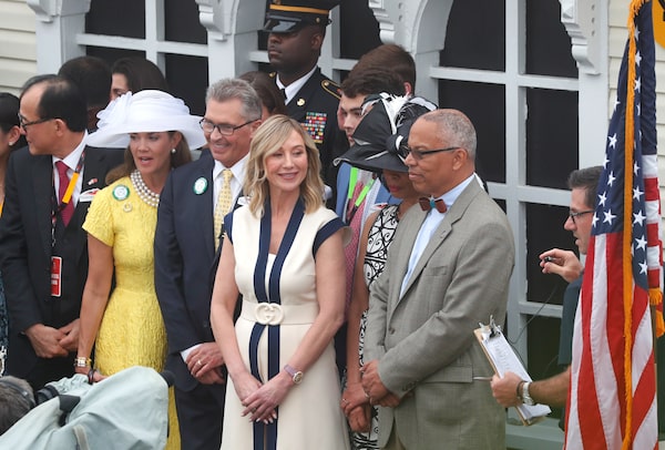 Belinda Stronach and Frank Stronach pose at the inaugural $12-million Pegasus World Cup invitational, in Hallandale, Fla., on Jan. 28, 2017.Gustavo Caballero