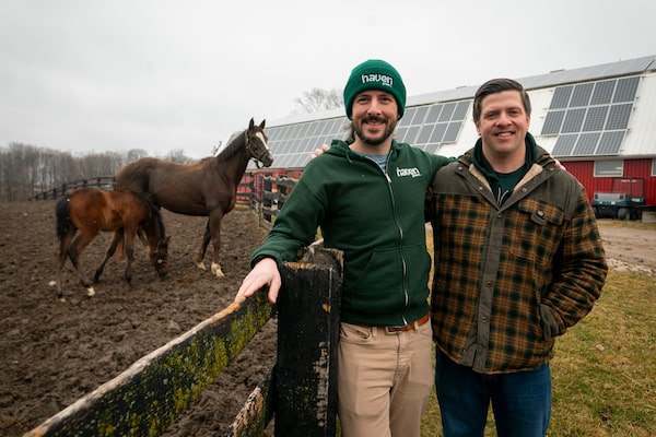 Left to right: Greg Willmot and brother Jay Willmot have transformed Kinghaven Farms from a Canadian thoroughbred racehorse mecca to a renewable energy producer, honey producer, egg farmer and – new this year – a greenhouse lettuce grower.Peter Power/The Globe and Mail