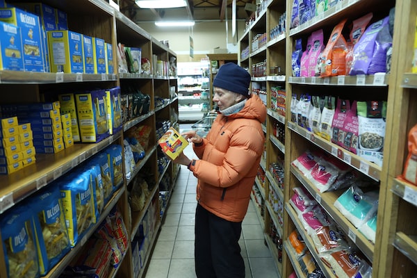 A shopper reads the label on a box of pasta at Cedars & Co. on Feb. 4, in Ottawa.Dave Chan/The Globe and Mail