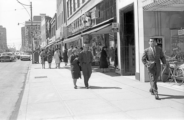 Spring shoppers checking store windows in Toronto for new spring fashions, April 5, 1963.John Boyd/The Globe and Mail