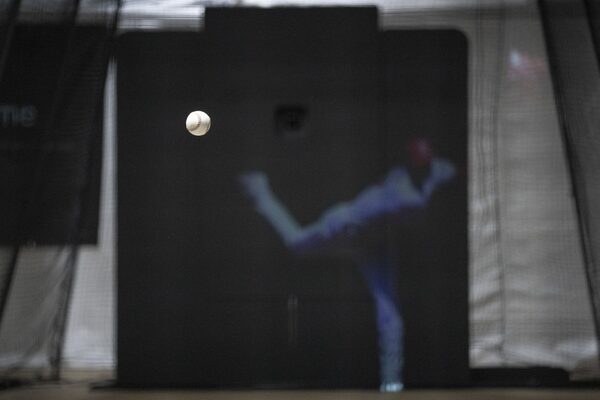 The Trajekt Arc pitching machine uses baseball’s high-tech data to mimic the way balls break from every big league pitcher and has been approved by Major League Baseball for in-game use this year in batting cages. Using video of deliveries and data, the robot allows a hitter to step in against recreated offerings from any pitcher he wants to face. Dodgers two-way star Shohei Ohtani said he used Trajekt to view his pitches from a different vantage point.