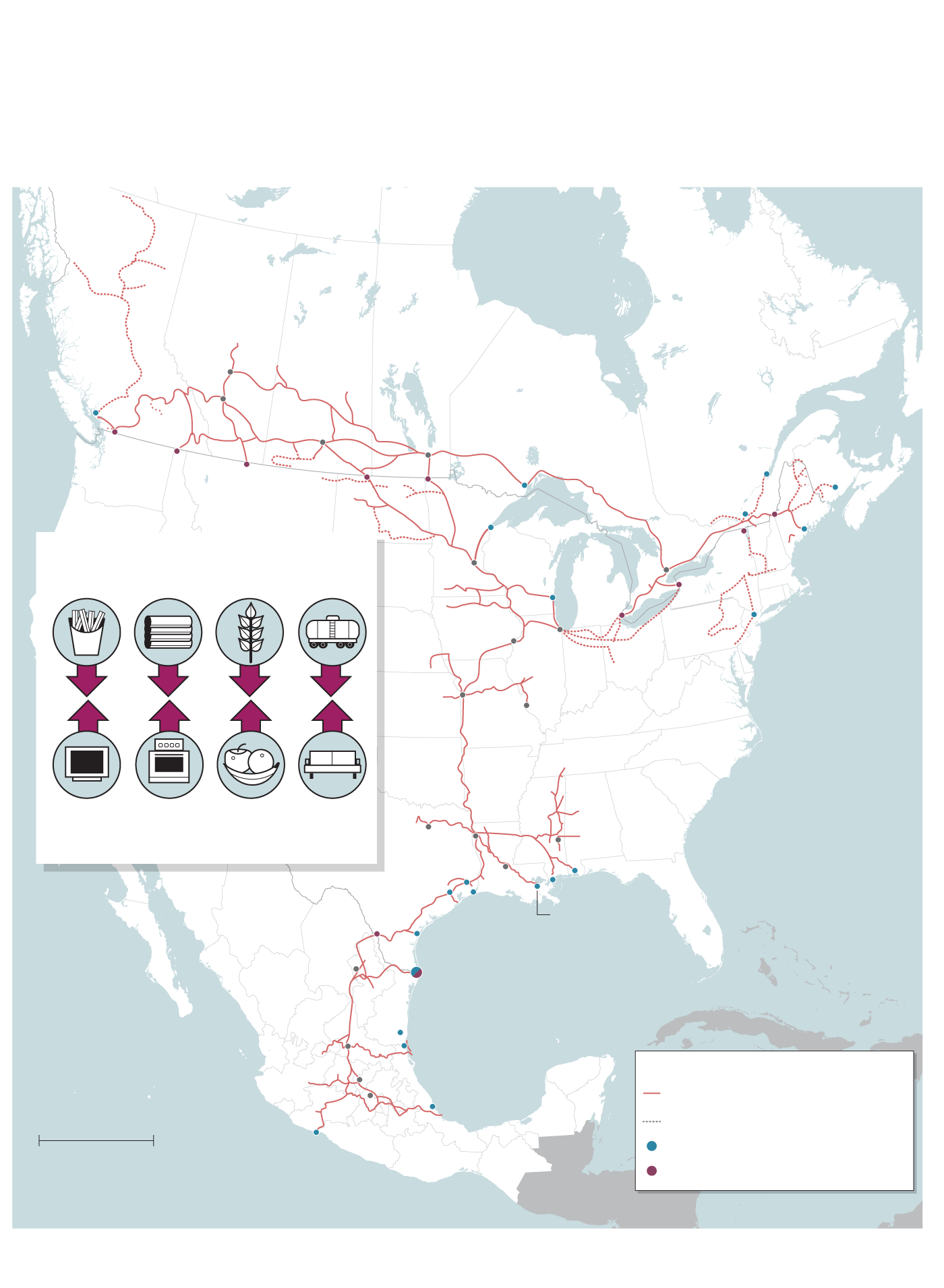 In mid-March, the railway began moving weekly loads of Mexico-bound frozen French fries produced in Alberta by McCain Foods Ltd. to Laredo, Tex. For now, the fries are offloaded there and put on trucks for the final leg into Mexico because the railway does not have cold storage capabilities there.
