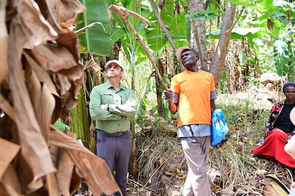 Mr. Mirza at a homestead in Elgeyo Marakwet County, Kenya, observing a climate smart agriculture project in February, 2025.Supplied