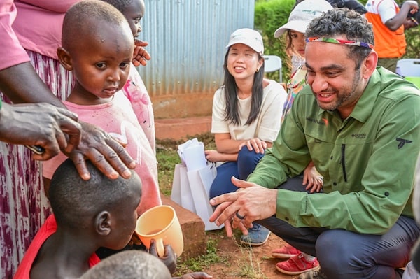 World Vision Canada chief operating officer Sumair Mirza in a community in Elgeyo Marakwet County, Kenya, talking to children and families in February, 2025.HANDOUT
