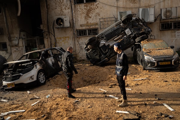 First responders inspect the impact site of an Iranian missile in Holon, Israel on Sunday.Erik Marmor/Getty Images