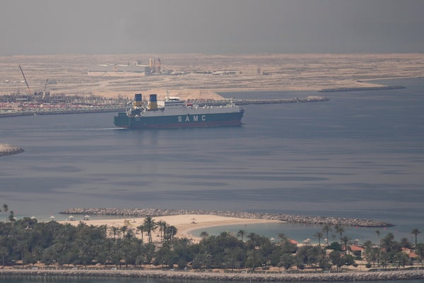 A cargo ship leaving the Dubai port in UAE on Sunday.Altaf Qadri/The Associated Press