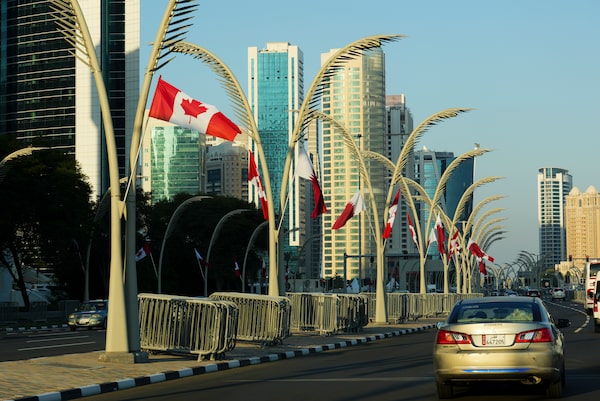 Canadian flags line a main boulevard during Prime Minister Mark Carney's visit to Doha, Qatar, in January.Sean Kilpatrick/The Canadian Press