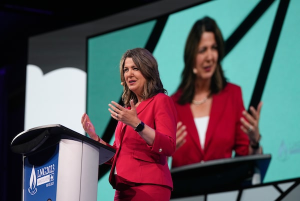 Alberta Premier Danielle Smith gives a keynote address at the LNG2023 conference in Vancouver, on July 13.DARRYL DYCK/The Canadian Press