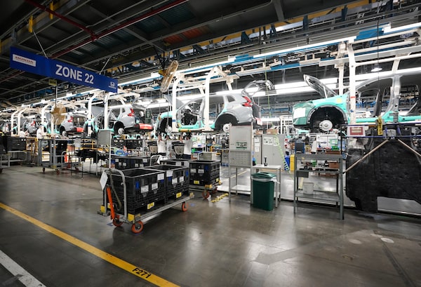 Honda employees work along the vehicle assembly line in Alliston, Ont., in April.Nathan Denette/The Canadian Press