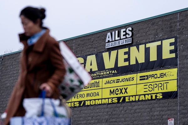 A person walks past Les Ailes de la Mode lettering, when leaving a shopping centre in Montreal.Christopher Katsarov/The Canadian Press
