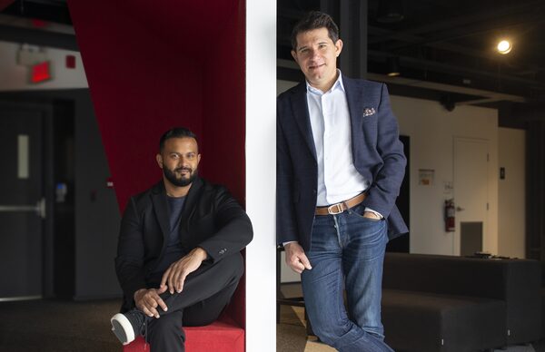 Dax Dasilva left, founder of Lightspeed Commerce, is stepping down as CEO. He will become executive chairman. Jean Paul Chauvet takes over as CEO.Christinne Muschi/The Globe and Mail