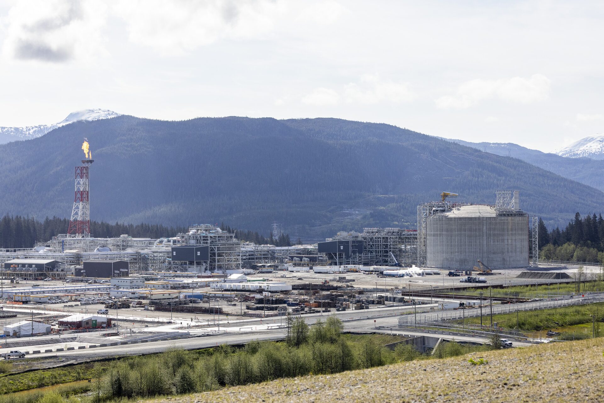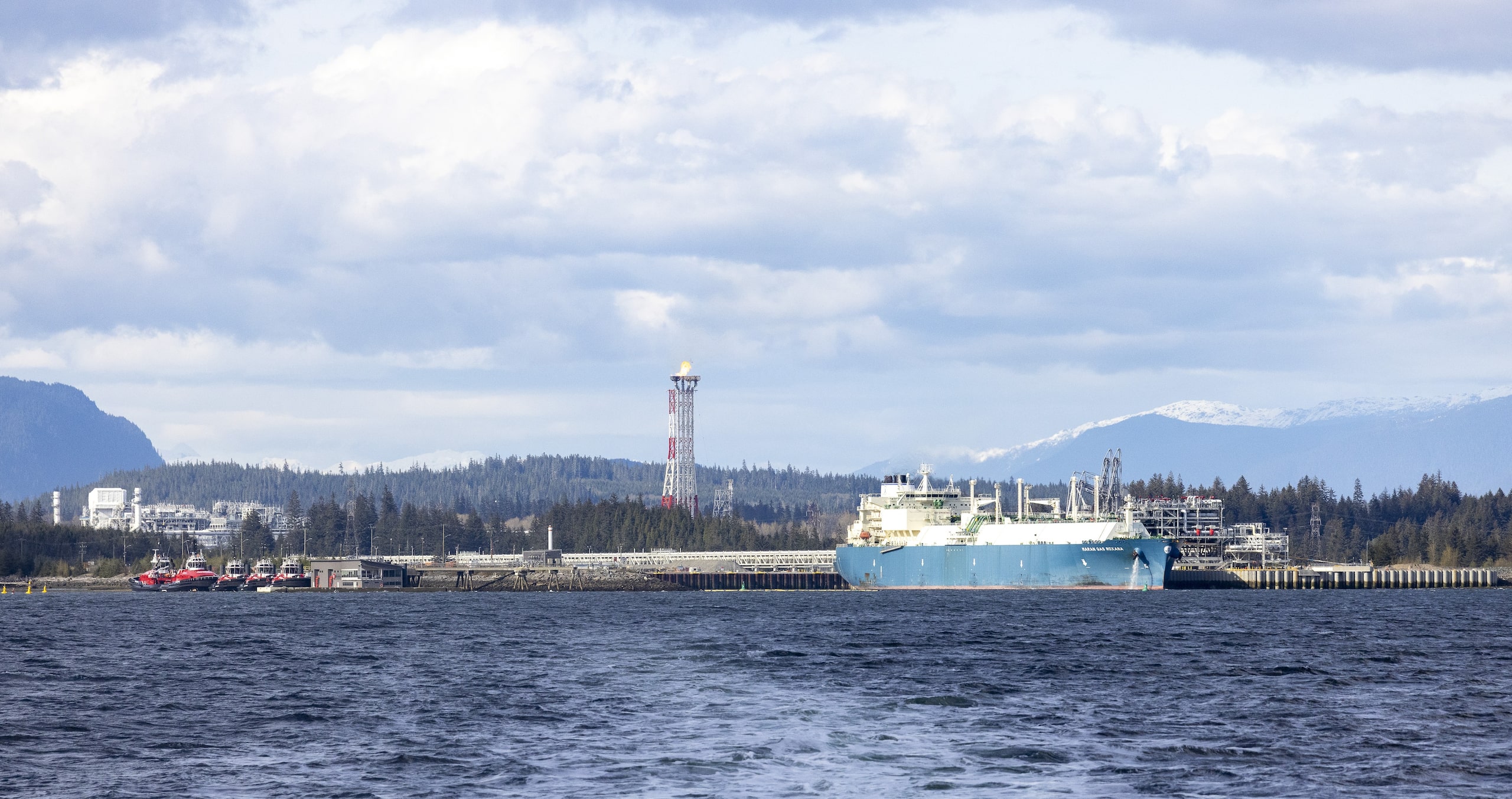 Within weeks, LNG produced in Kitimat will start being loaded onto Asia-bound ships that will be docked at the wharf at the head of Douglas Channel, an inlet lined with rolling coastal mountains.