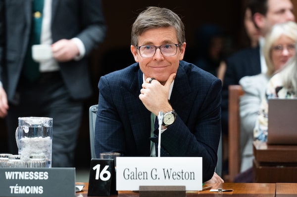 Galen G. Weston, Chairman and President of Loblaw Companies Limited, appeared at the Standing Committee on Agriculture and Agri-Food (AGRI) investigating food price inflation in Ottawa, Wednesday, March 8, 2023.Spencer Colby/The Canadian Press