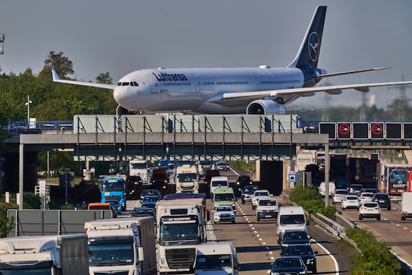 A Lufthansa aircraft in Frankfurt on Wednesday. The Lufthansa Group says the cancellation of less profitable routes would save the equivalent of approximately 40,000 metric tons of jet fuel.Michael Probst/The Associated Press