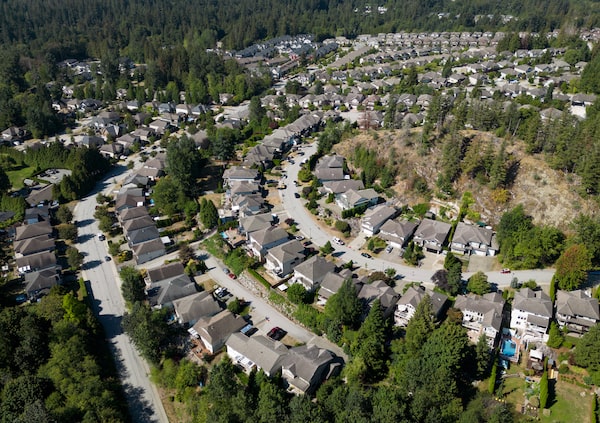 Houses in a neighbourhood on the side of a mountain, in Maple Ridge, B.C., on Aug. 17, 2023.DARRYL DYCK/The Canadian Press