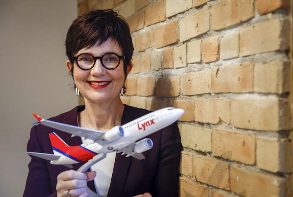 Chief executive Merren McArthur says Calgary-based Lynx, formerly known as Enerjet, aims to operate nearly 90 flights a week on nine routes by June 2022.Jeff McIntosh/The Canadian Press