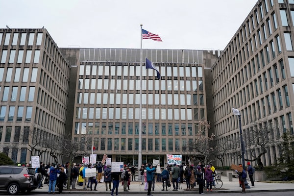 Demonstrators rally during a protest against billionaire Elon Musk, who is heading U.S. President Donald Trump's drive to shrink the federal government, outside the U.S. Office of Personnel Management in Washington on Feb. 5.Nathan Howard/Reuters