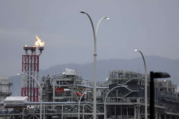 LNG Canada's flare stack burns above its liquid natural gas export facility in Kitimat, B.C., in August. Ottawa has released new methane regulations for oil and gas producers and large landfills.Jesse Winter/Reuters
