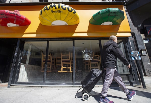 Lower-wage industries – a 3 Amigos restaurant seen here in Montreal on April 6, 2020 – will be 'over-represented' in job losses, the Conference Board said, led by about 444,000 affected positions in full and limited service eating places.Christinne Muschi/The Globe and Mail