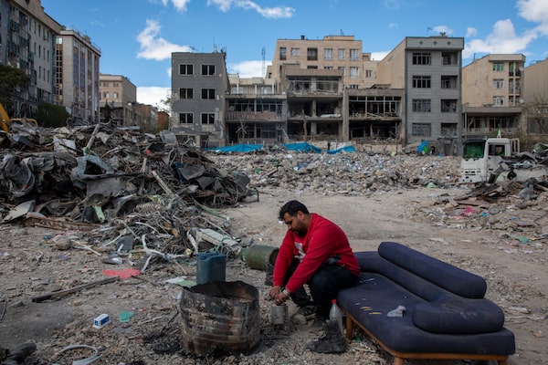 A man sits among buildings destroyed in a joint attack by Israel and the United States on April 6, in Tehran, Iran.Majid Saeedi/Getty Images