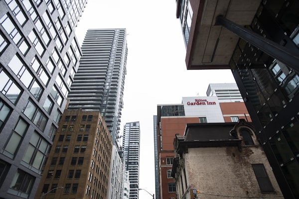 Adelaide St. West in downtown Toronto on March 14. A poll of top executives from 100 Canadian commercial real estate owners and tenant companies shows office tenants are looking for more than just a good price from landlords, with sustainability among the top issues identified in the survey.Fred Lum/the Globe and Mail