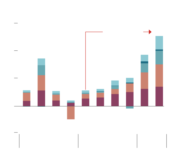 Cash returned to shareholders from five