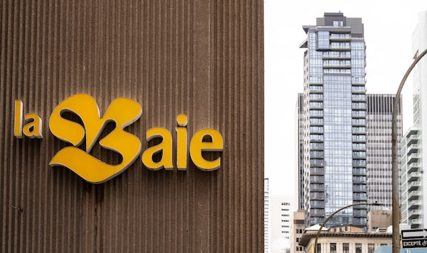 Signage is seen on the Hudson's Bay flagship store, which ceased operations in June, 2025, in downtown Montreal.Christinne Muschi/The Canadian Press