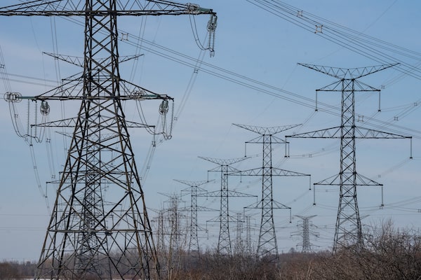 Power lines in Bowmanville, Ont., in March, 2025.Andres Valenzuela/The Globe and Mail
