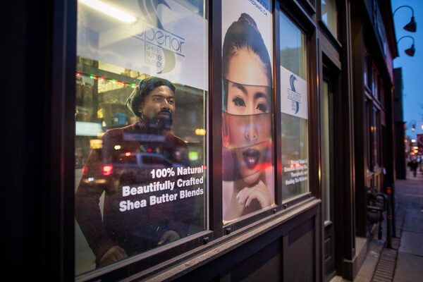 Adriel Domingue, owner of Superior Shea Butter Blends, at his store in Brampton, Ont., on Jan. 14, 2021.Fred Lum/The Globe and Mail
