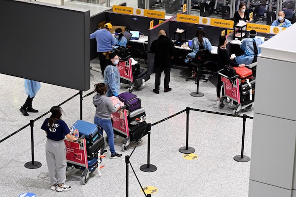 Travellers arrive at Terminal 3 at Pearson Airport in Toronto, on Feb. 22, 2021.Frank Gunn/The Canadian Press
