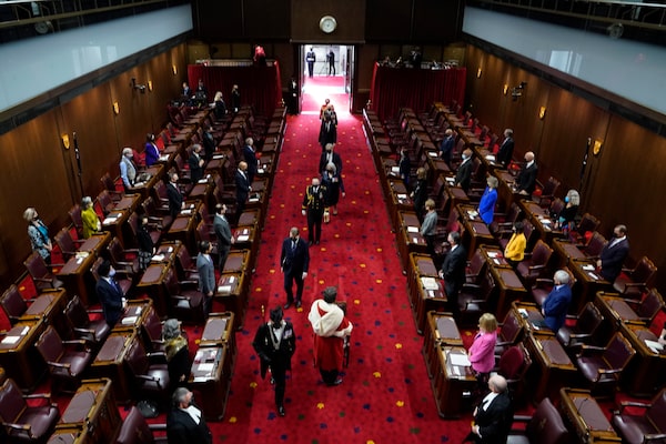 Mr. Trudeau, Governor-General Mary Simon and others arrive at the Senate for this past November's Throne Speech, which laid out the federal climate agenda in urgent terms. 'Our Earth is in danger,' Ms. Simon said.Adrian Wyld/The Canadian Press