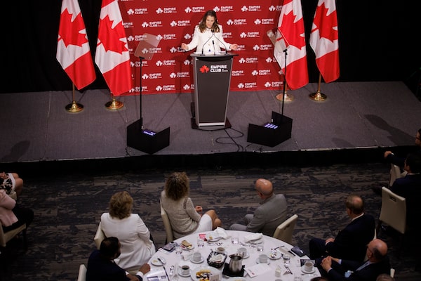 Deputy Prime Minister Chrystia Freeland addresses a crowd at the Empire Club of Canada in Toronto on June 16.Cole Burston/The Canadian Press