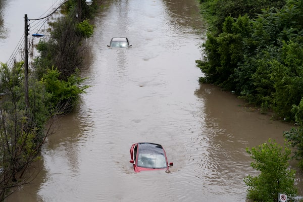 Cars are partially submerged in flood waters in the Don Valley following heavy rain in Toronto, on July 16 2024. An advocacy group says Canada’s big pension managers need to more actively use their power and influence as U.S. President Donald Trump unravels momentum on climate action and a Canadian carbon tax policy looks to be on the way out.Arlyn McAdorey/The Canadian Press