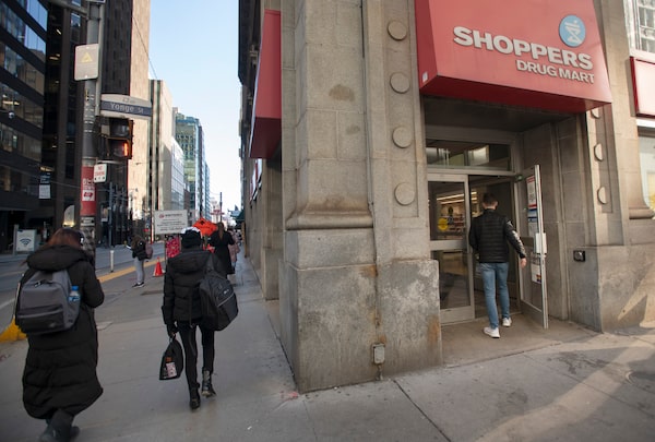 A customer enters the Shoppers Drug Mart location at the south east corner of King Street East and Yonge Street in downtown Toronto on Feb. 6.Fred Lum/The Globe and Mail