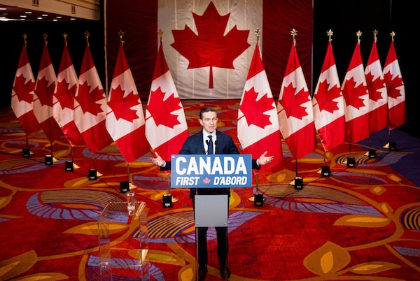 For Mr. Poilievre, gatherings like this over his first two years as party leader were unremarkable events ahead of what was expected to be a cake walk of an election against Justin Trudeau. The stakes rose when the Prime Minister decided to resign, U.S. President Donald Trump launched a trade war and Liberal leadership candidate Mark Carney emerged as a viable answer to the question: Who is best equipped to deal with Mr. Trump?