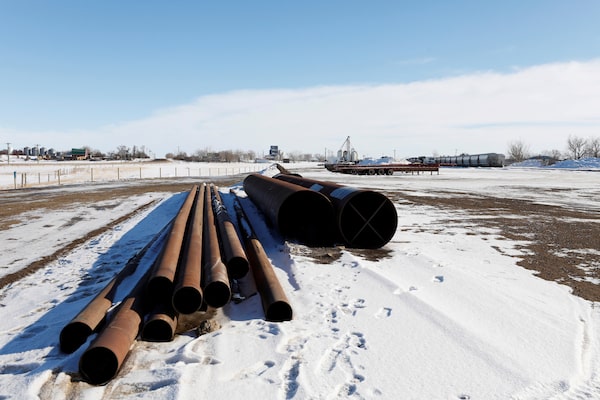 A supply depot servicing the Keystone XL crude oil pipeline lies idle in Oyen, Alta., in February, 2021.Todd Korol/Reuters