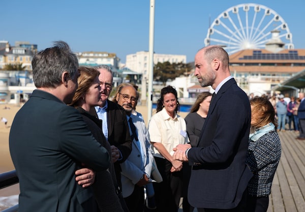 Melanie Redman, second from left, and Stephen Gaetz, third from left, speak to Prince William in Bournemouth, England.Andrew Parsons / Kensington Pala/Supplied
