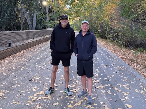 Paul, left, and Doug Lavoie of Calgary have raised around $400,000 for the Calgary Food Bank through running and walking events.Supplied