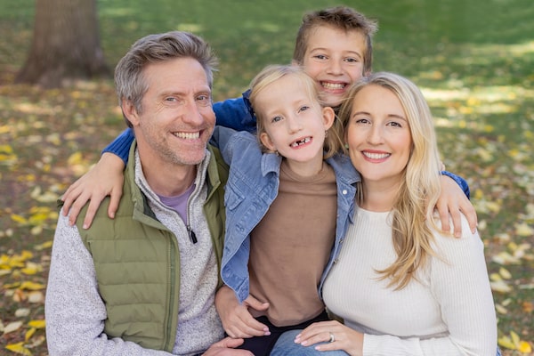 Penny Hunsburger, centre, has a rare form of muscular dystrophy. Her parents, Laura Devlin and Chris Hunsburger, have raised $250,000 for research into the disease.GOOSEBERRY STUDIOS/Supplied
