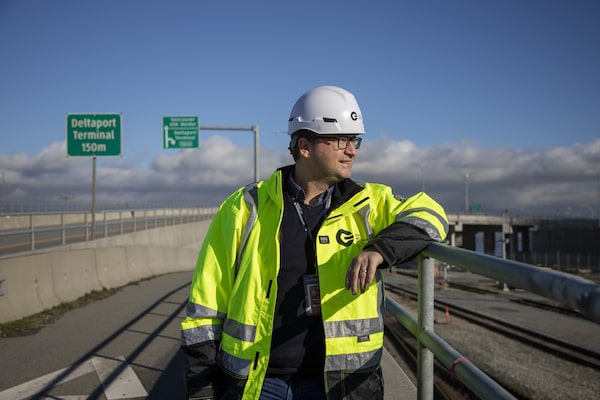 Vice-president of public affairs at GCT Global Container Terminals Inc, Marko Dekovic, looks out across the site at Global Container Terminal’s Deltaport.Alia Youssef/The Globe and Mail