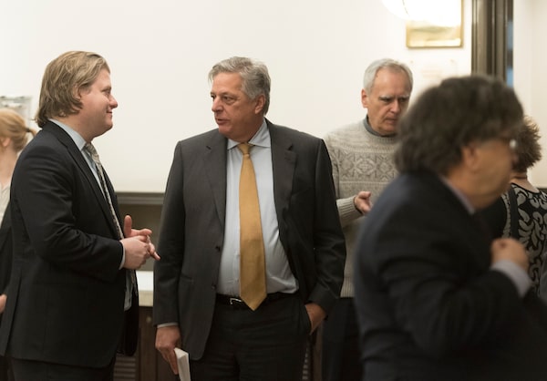 Shareholders chat following a Power Corporation shareholders meeting in Montreal on Feb. 11, 2020.Graham Hughes/The Canadian Press