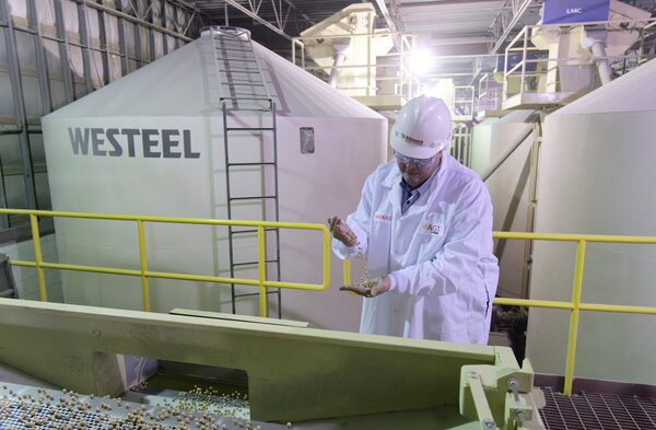 The CEO of AGT Foods and Ingredients is dwarfed by vats with pulses and pulse products in a facility on the perimeter of Regina. Pulses – lentils, chickpeas, peas and dry beans – are the edible seeds of legume plants. They’re nutritional powerhouses packed with three main parts: fiber, starch and protein. Protein, for its nutritional benefits, is the key component.