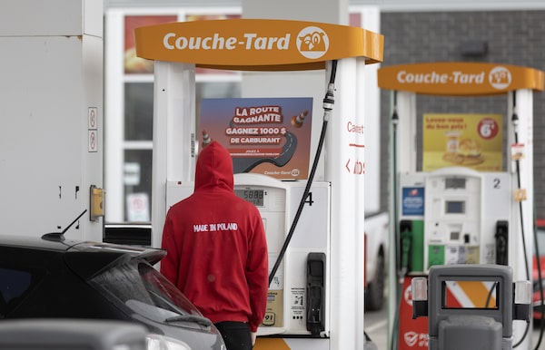A person fills up at a Couche-Tard gas station in Vaudreuil-Dorion, Que., in March.Christinne Muschi/The Globe and Mail